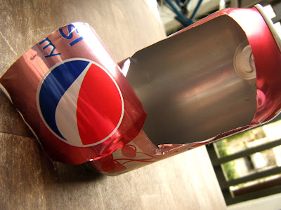 Minci přiložíme na rub plechovky ↓ tak, aby v jejím obvodu byly všechny tři barvy
